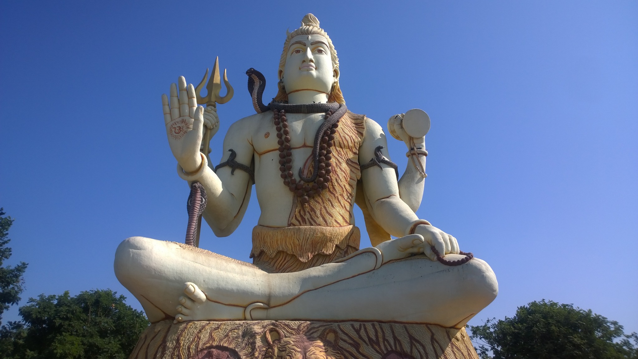 A 25-meter tall statue of Lord Shiva at Nageshwar Jyotirlinga near Dwarka, symbolizing the temple’s spiritual and cultural significance